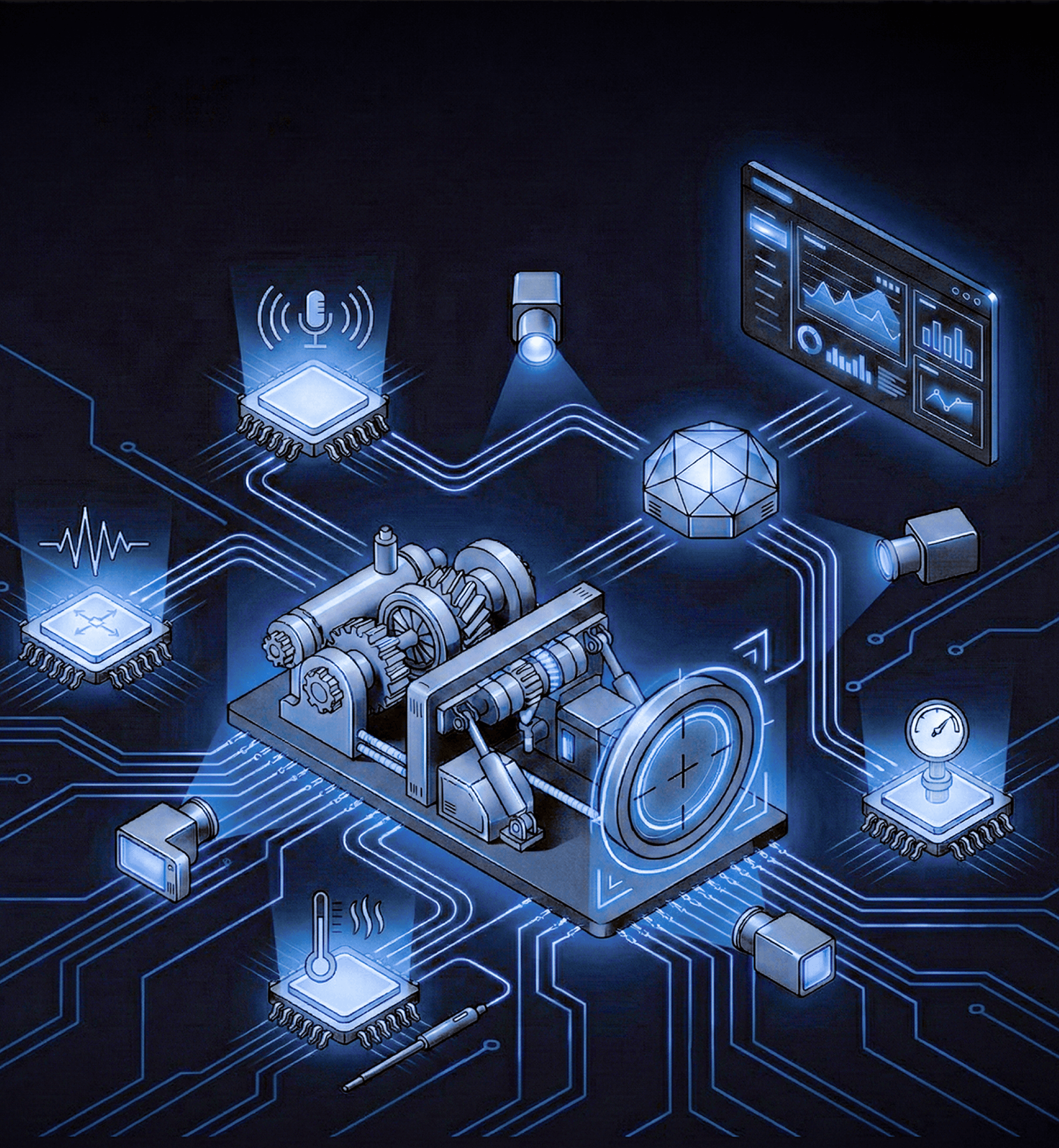 The Sensing Layer captures the heartbeat of your operations through vibration, acoustics, thermal, and visual inputs. This is where raw physical signals become meaningful intelligence, enabling Nexus to see, hear, and understand your factory in real time