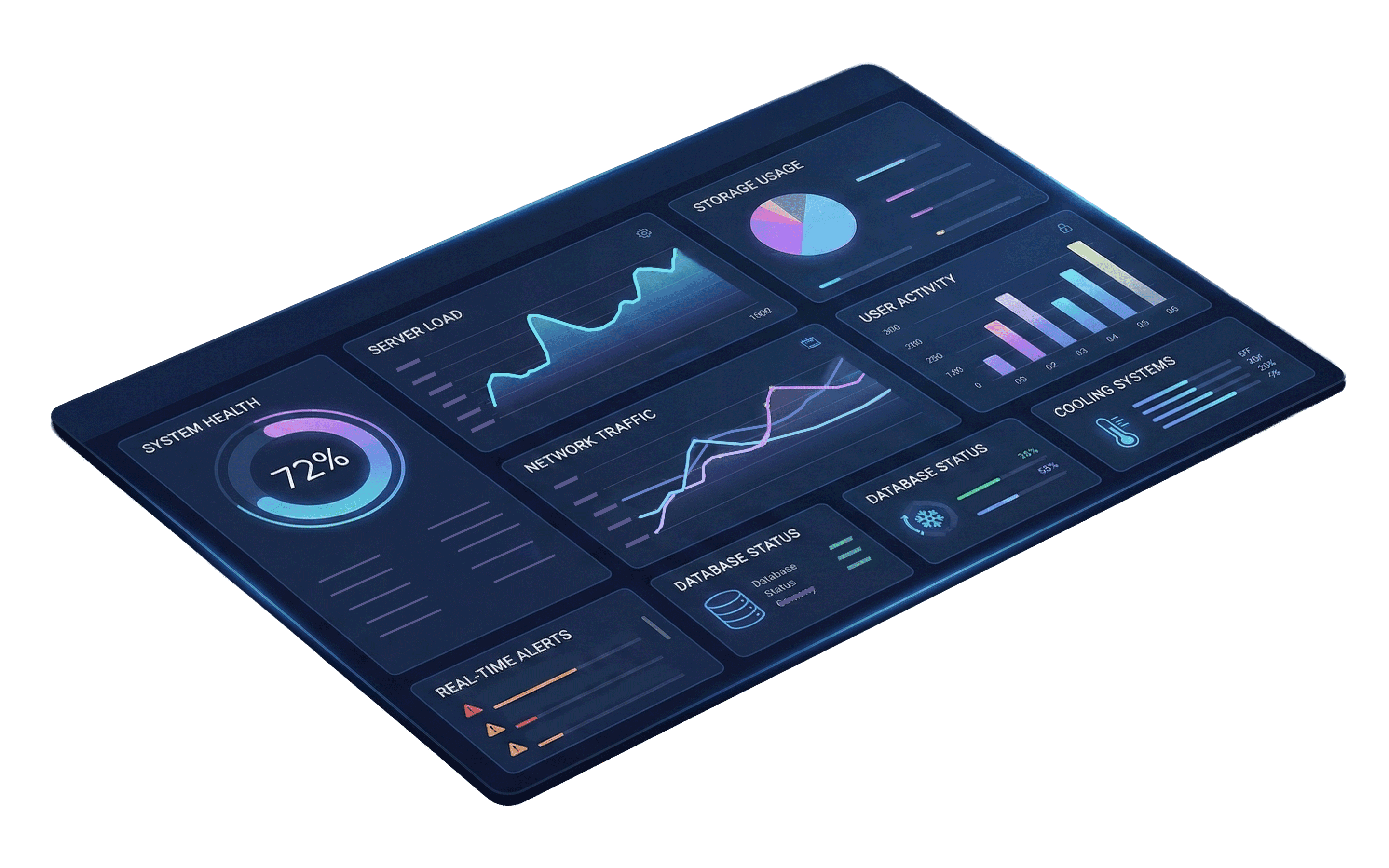 Live operational dashboards with real-time KPIs, machine states, alerts, and performance trends, everything operators